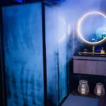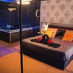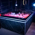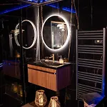 Romance Room & Love - Jacuzzi - Parking - Menton incluye TV y TV de pantalla plana con canales vía satélite, comodidades como una plancha y tabla de planchar, climatizador e instalaciones de seguridad como detectores de humo. Este establecimiento dispone de 1 dormitorio con almohadas de pluma. Hay 1 baño con un inodoro separado de la ducha, una bañera y una ducha, además de secadores de pelo y toallas.